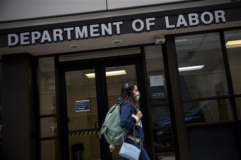 | À l'extérieur du siège du département américain du Travail, le 8 mai. |