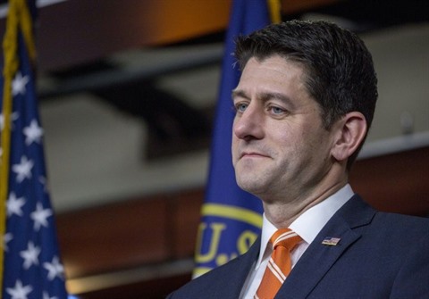 | Le président de la Chambre des représentants Paul Ryan s'exprime devant la presse au Congrès américain, le 17 janvier |
