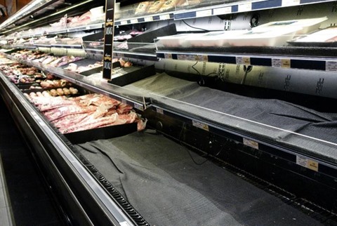 | Des rayons presques vides dans un supermarché de Bethesda dans le Maryland le 13 janvier. |