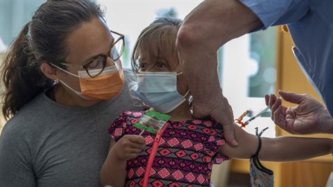 | Une fillette se fait vacciner contre le COVID-19 à Needham (Éats-Unis), le 21 juin. |