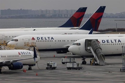 | Des appareils de la compagnie aérienne Delta Airlines sur le tarmac de l'aéroport de New York, le 24 décembre 2021. |