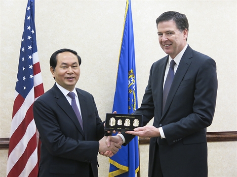 À cette occasion, le ministre Trân Dai Quang et le directeur du FBI, James Comey, ont assisté à la cérémonie de signature d'un accord de transfert par le FBI d'un logiciel d’expertise de l'ADN à la police vietnamienne.
