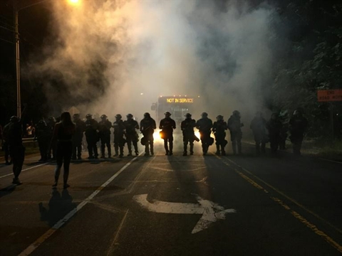 | Des policiers encerclent des manifestants à Charlotte en Caroline du Nord, le 20 septembre. |