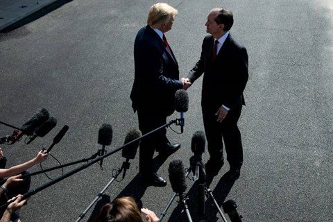 | Le président américain Donald Trump (gauche) et le ministre du Travail, Alex Acosta, le 12 juillet à la Maison Blanche, à Washington. |
