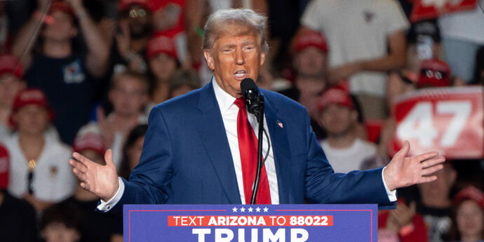 | Kash Patel lors d’un meeting de Donald Trump à Prescott Valley en Arizona, le 13 octobre. |