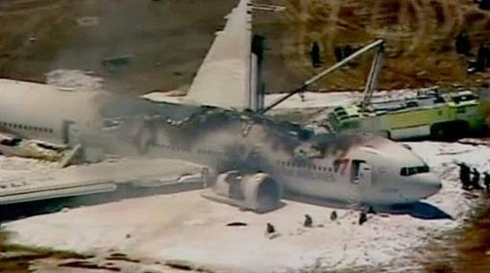 Les télévisions américaines montraient les images impressionnantes de l'avion, entouré de débris, la queue séparée du reste de l'appareil et toute la partie avant du toit manquante. L'avion n'a heurté aucun bâtiment avant de rater son atterrissage.