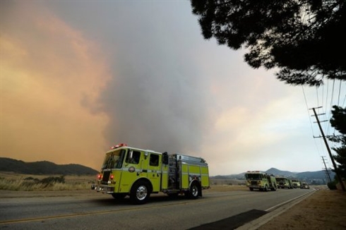 | Un camion de pompiers arrive sur les lieux d'un important incendie, le 3 mai à Newbury Park en Californie. Photo : AFP/VNA/CVN |