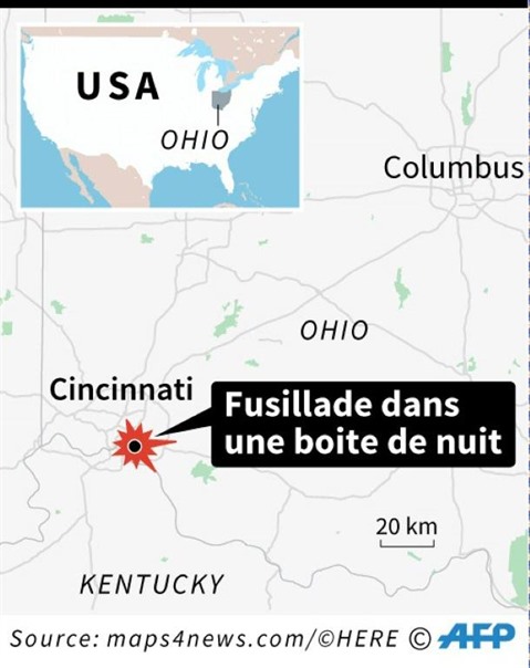 Dans la boîte de Cincinnati, ville de quelque 300.000 habitants, la foule s'est dispersée pendant la fusillade dans la nuit du 25 mars au 26 mars. Il n'y a pas encore eu d'arrestation, a précisé le sergent Eric Franz sur la chaîne ABC, décrivant une "scène de crime étendue et complexe". La police interrogeait les nombreux témoins, a-t-il ajouté.