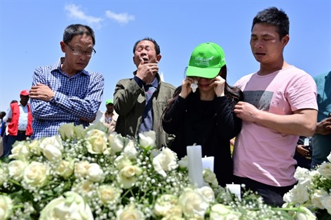 | Des proches des victimes en pleurs sur le site du crash du Boeing 737 MAX d'Ethiopian Airlines, à Hama Quntushele, en Éthiopie, le 13 mars. |