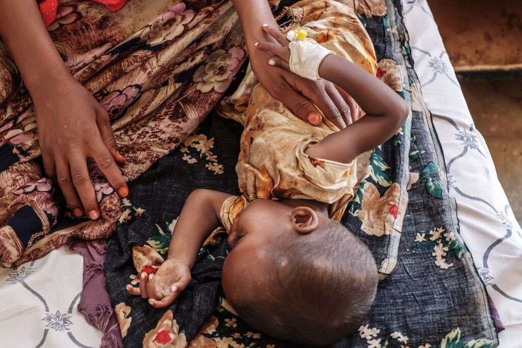 | Un enfant atteint de malnutrition est soigné dans l'hôpital à Gode, en Éthiopie. |