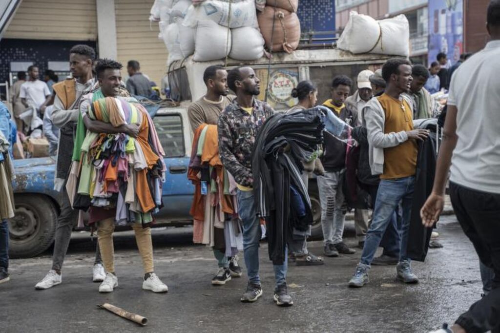 | Des vendeurs de vêtements dans le quartier historique de Merkato à Addis-Abeba, en Éthiopie, le 14 septembre. |