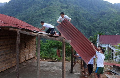 | Construction d'une école à Muong Tè, province montagneuse de Lai Châu (Nord). |