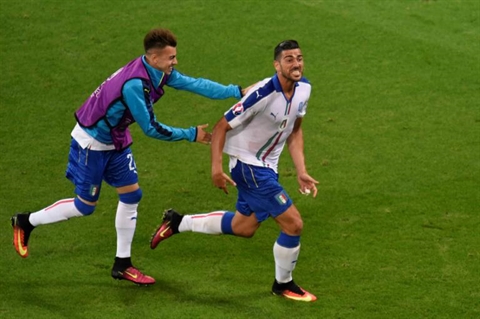 | L'attaquant italien Graziano Pellè inscrit le 2e but face à la Belgique, le 13 juin à Lyon |