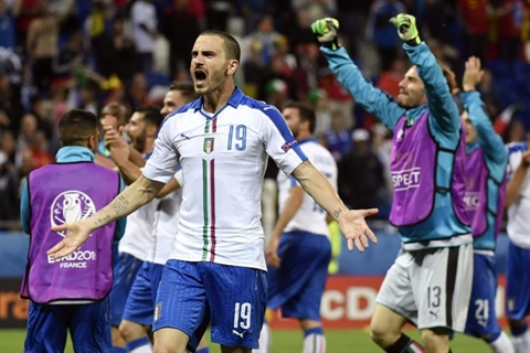 | La rage du défenseur italien, Leonardo Bonucci, à l'issue du match remporté face à la Belgique, le 13 juin à Lyon. |