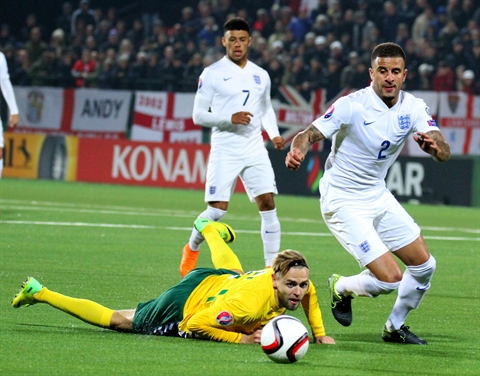 | Une scène du match de l'Angleterre contre la Lituanie, le 12 octobre à Vilnius. |
