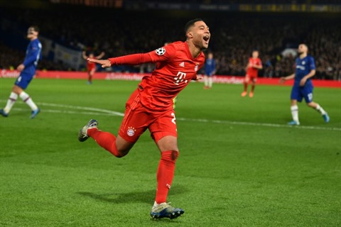 | Serge Gnabry s'est offert un doublé contre Chelsea, en Ligue des champions, le 25 février à Stamford Bridge. |