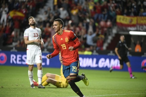 Au stade El Molinon de Gijon (Nord), les Espagnols ont outrageusement dominé les modestes Féroïens, prenant l'avantage sur un plat du pied de Rodrigo (13e), peut-être hors-jeu sur l'occasion, puis sur une frappe déviée de l'attaquant de Valence (50e). Alcacer, entré en fin de match, a alourdi le score d'une subtile déviation (90e) puis d'une tête décroisée (90e+3).