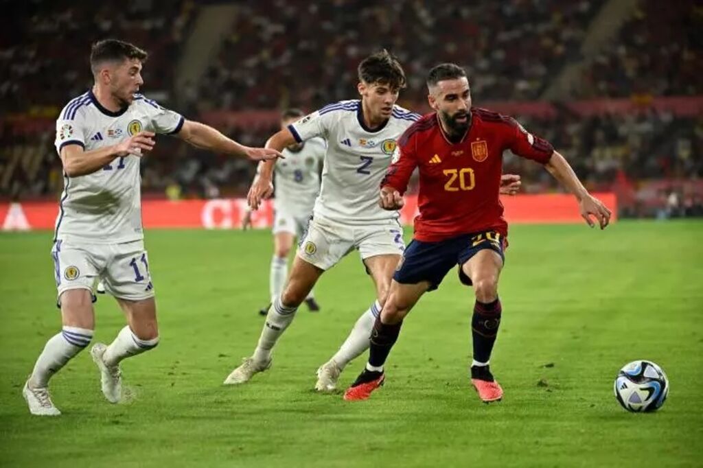 | Le latéral Dani Carvajal avec l'Espagne contre l'Ecosse en qualifications pour l'Euro-2024 le 12 octobre 2023 à Séville. |