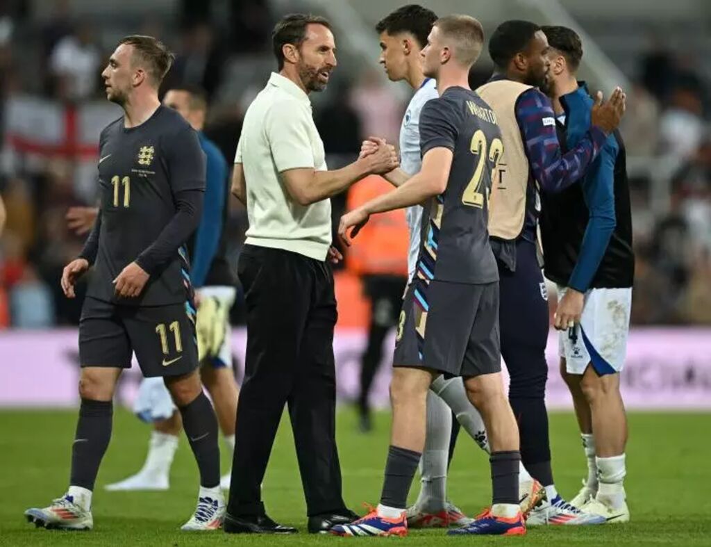 Le sélectionneur des "Three Lions", parmi les grands favoris du tournoi en Allemagne (14 juin - 14 juillet), devait naviguer entre l'absence de titulaires blessés, ou absents comme le Madrilène Jude Bellingham, et la nécessité de voir à l’œuvre son banc et son arrière-banc.
