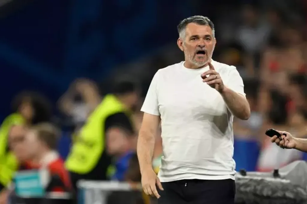 | Le sélectionneur français de la Géorgie, Willy Sagnol, lors du match contre le Portugal, le 26 juin à Gelsenkirchen. |