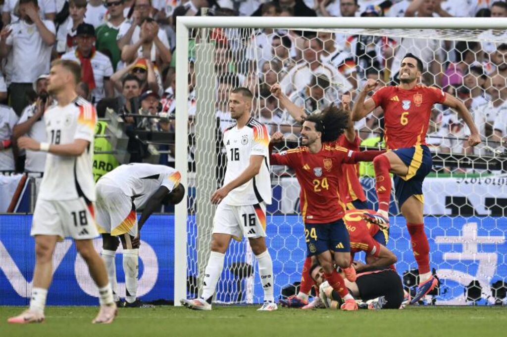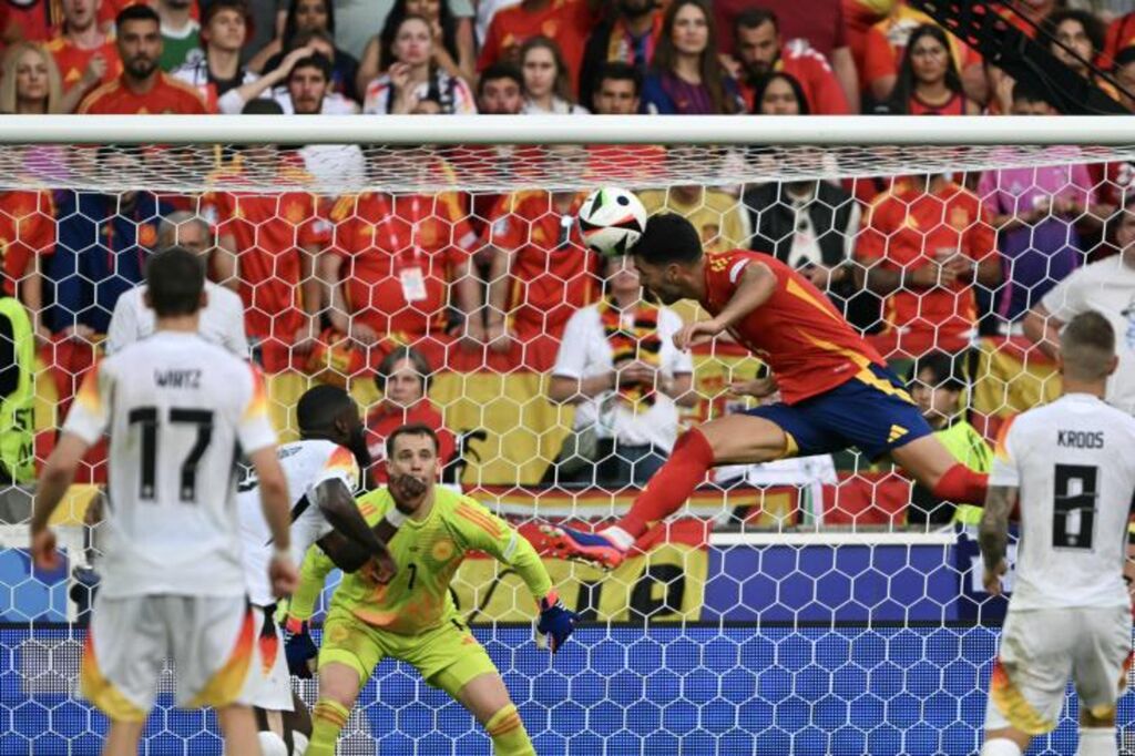 Une malédiction se brise, l'autre se poursuit. L'Espagne, invaincue face à l'Allemagne depuis 36 ans en compétition internationale mais qui n'était jamais parvenue à éliminer le pays organisateur d'un grand tournoi, est sortie victorieuse de cette finale avant l'heure grâce à un but à la 119e minute du milieu de la Real, Sociedad Mikel Merino, servi par Dani Olmo, héros inattendu et premier buteur du match.