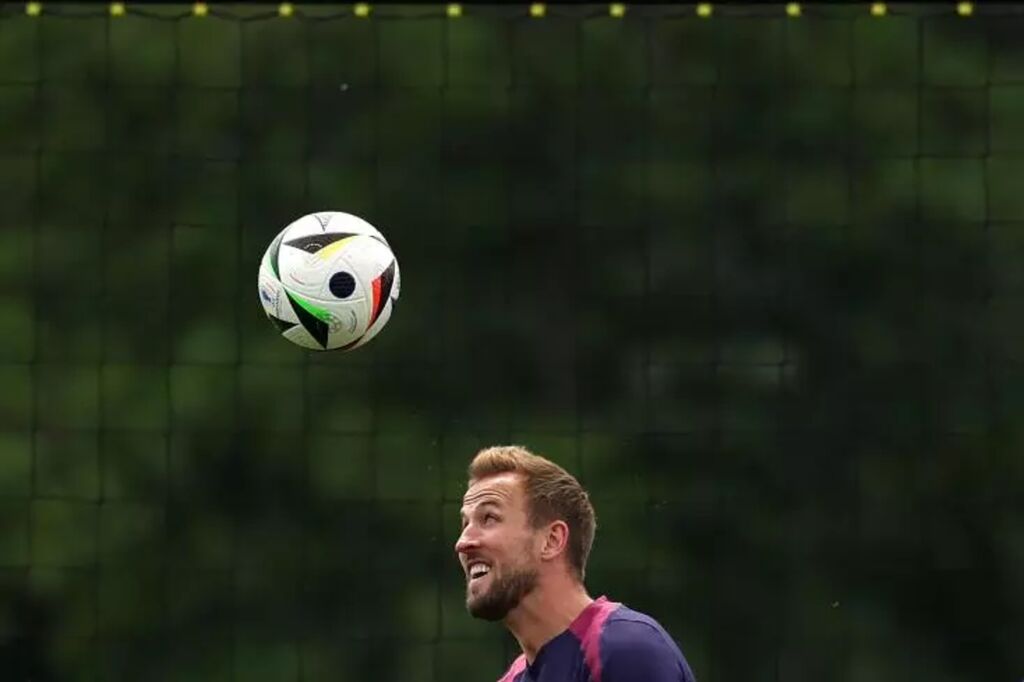 | L'attaquant anglais Harry Kane samedi 29 juin à l'entraînement à Blankenhain. |