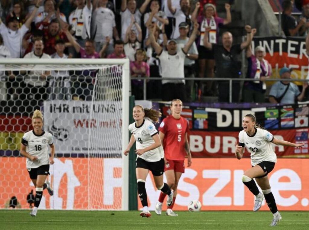 | Jule Brand (droite) vient de lancer l'Allemagne sur la voie du succès contre la Pologne dans le groupe C de l'Euro à Saint-Gall, le 4 juillet 2025. |