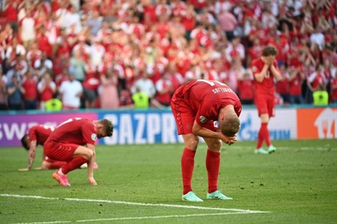 Devant son public déchaîné, le Danemark avait pourtant réalisé une première période tonitruante marquée par l'ouverture du score de Yussuf Poulsen dès la 2e minute et plusieurs autres occasions franches. Mais ils n'ont pas réussi à maintenir leur intensité incroyable après la pause et ont manqué de réussite en fin de rencontre quand Martin Braithwaite a trouvé la barre transversale de la tête (87e).