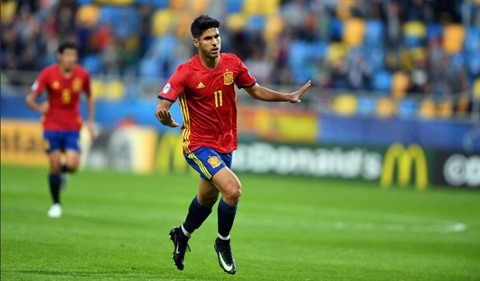 | L'Espagnol Marco Asensio, auteur d'un triplé face à la Macédoine, lors de l'Euro Espoirs, le 17 juin 2017 à Gdynia. |