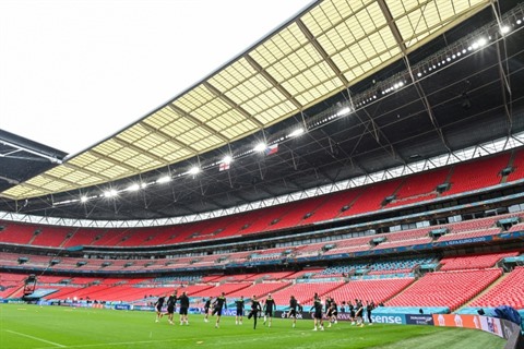 | Le stade de Wembley à Londres accueille les joueurs de la République tchèque pour une séance d'entraînement devant des tribunes vides à la veille de leur match de l'Euro 2020 contre l'Angleterre, le 21 juin. |
