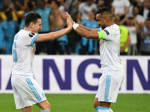 | Les leaders de Marseille, Florian Thauvin, buteur, et Dimitri Payet, passeur, se sont illustrés contre Salzbourg, le 26 avril au Vélodrome. |