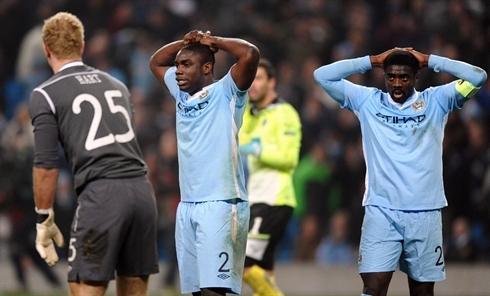 Défaits 3-2 à Old Trafford, les leaders de la Premier League, largement dominés, ont à nouveau subi la loi des Basques, qui ont néanmoins perdu leur buteur Fernando Llorente en raison d'une pointe ressentie à la cuisse gauche. Leurs voisins de City ont fait mieux en battant le Sporting Portugal mais cela n'a pas suffi, à cause de leur défaite au match aller (1-0). Les Citizens, menés 2-0 à la mi-temps, ont réagi en seconde période et même raté la balle de match à la dernière seconde, quand la tête du gardien Joe Hart, monté en renfort, frôlait le poteau adverse.