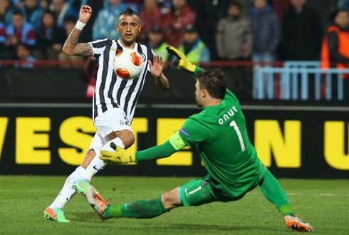 | Le milieu de terrain de la Juventus Arturo Vidal, buteur contre Trabzonspor, le 27 février. |