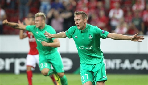 | La joie de Robert Beric après avoir égalisé pour les Verts à Mayence en Europa League, le 15 septembre. |