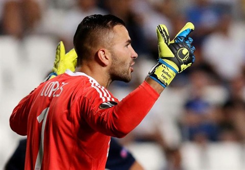| Le gardien de Lyon, Anthony Lopes, lors du match face à Apollon Limassol en Europa League, le 14 septembre à Nicosie. |