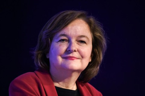 | La tête de liste (LREM) pour les élections européennes Nathalie Loiseau à Paris, le 25 avril. |