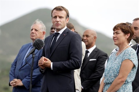| Le président français Emmanuel Macron (centre) sur l'île antillaise de Saint-Martin, le 29 septembre. |
