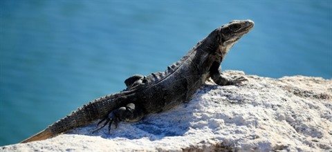 | Lézard sur la plage del Carmen, au Mexique, le 9 novembre 2018. |