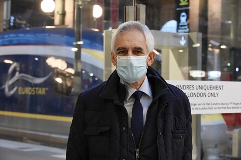 | Le directeur général d'Eurostar, Jacques Damas, le 10 décembre 2020 au terminal Eurostar, Gare du Nord, à Paris. |