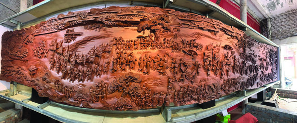 C'est la maison de haute couture Dior qui lui a permis de le faire. L'immense broderie avait été conçue pour un défilé (2021-2022). Ce panorama grandiose (plus grand que la Tapisserie de Bayeux) a été réalisé par des centaines d'ouvrières indiennes à partir de dessins de la plasticienne.