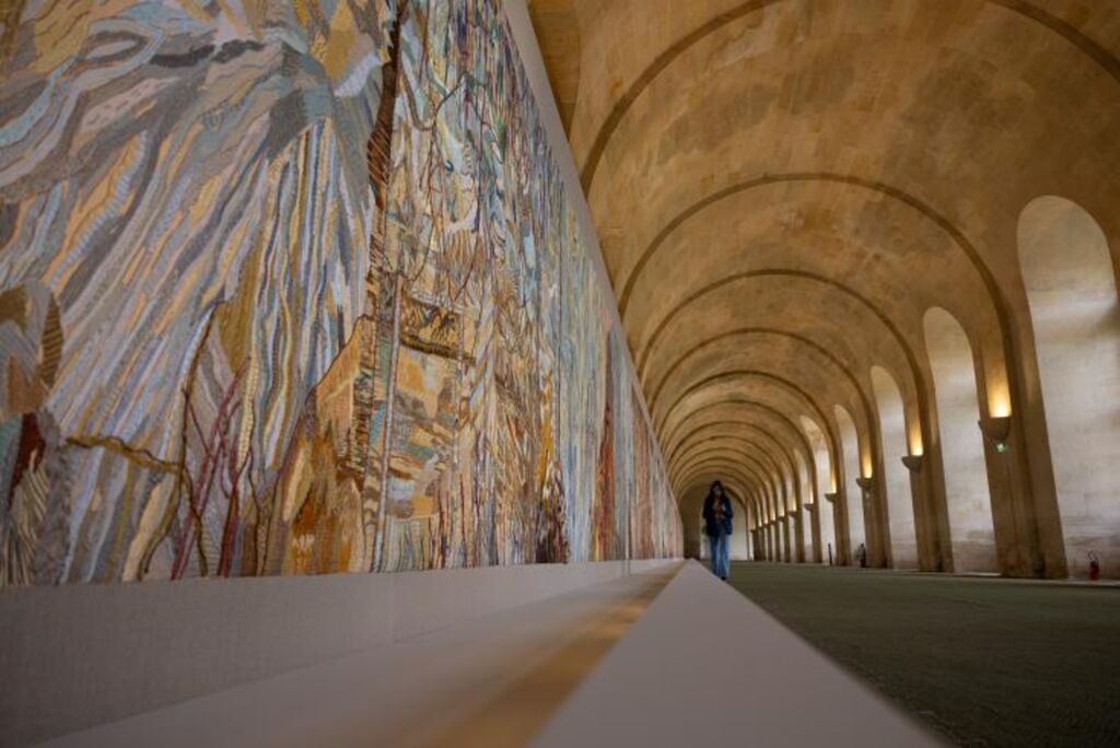 À l'Orangerie, l'artiste, née à Paris en 1975, assume une forme de rupture. Cette rupture, c'est "Chambre de soie", une broderie de plus cent mètres de long avec des dizaines de panneaux de 3,50 mètres de hauteur, offrant une plongée dans un paysage fantasmé et luxuriant.