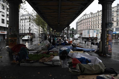 | Un campement de migrants sous le métro aérien, le 15 septembre à Paris |