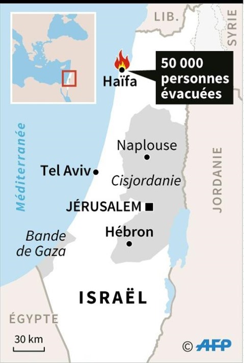 "Au total, nous avons dû évacuer 60.000 habitants, c'est sans précédent à Haïfa", a dit Yona Yahav, maire de cette ville mixte juive et arabe d'environ 280.000 habitants, déjà théâtre en 2010 d'un incendie qui avait fait 44 morts. Les secours ont dénombré 95 hospitalisations dans tout le pays, dont 65 à Haïfa, la plupart pour des problèmes respiratoires sans gravité.