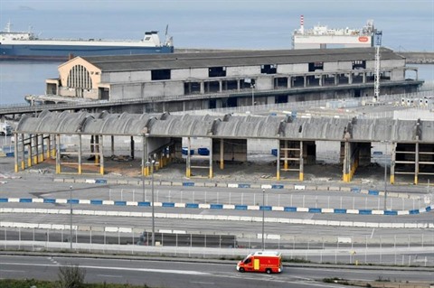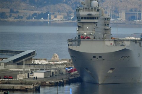 | Le porte-hélicoptère Tonnerre dans le port de Marseille où sont débarqués les malades COVID-19 venant de Corse, le 23 mars. |