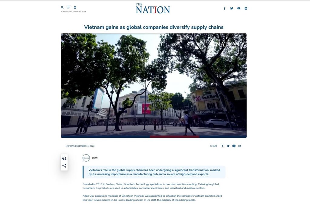 | L'article sur le site web thaïlandais évalue le rôle croissant du Vietnam dans la chaîne d'approvisionnement mondiale. |