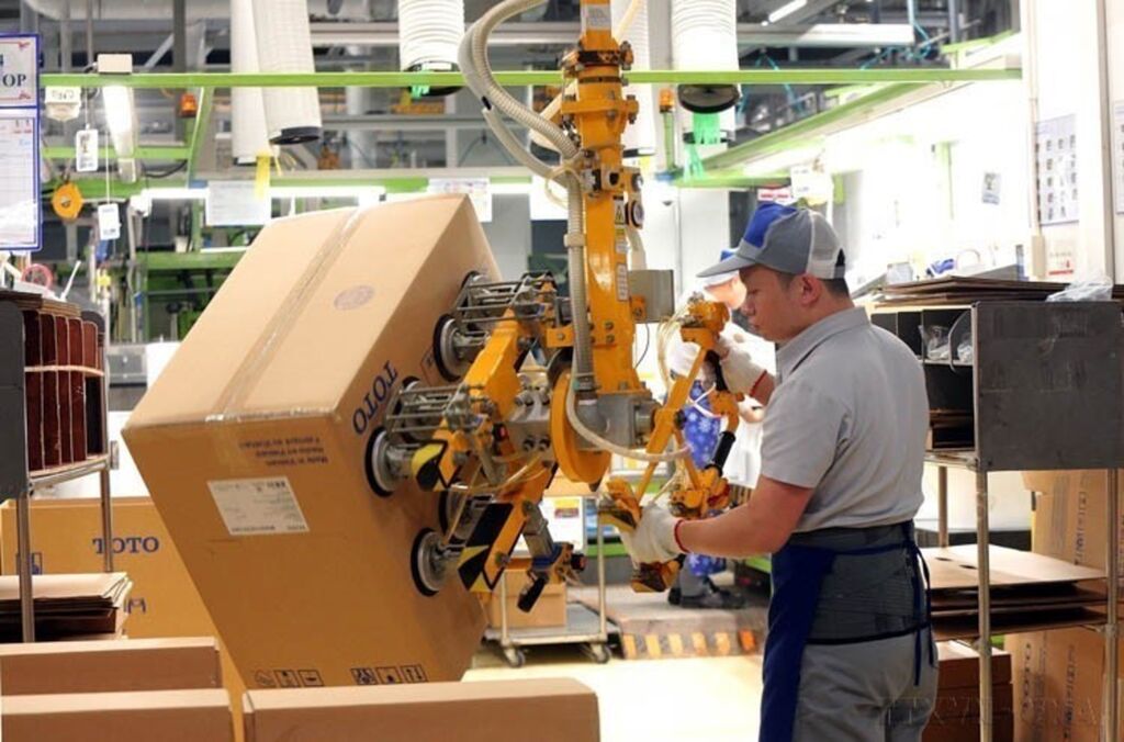 | Chaîne d'emballage de produits de l'usine TOTO Vietnam, dans le parc industriel de Thang Long 2, district de My Hao, province de Hung Yên (Nord). |