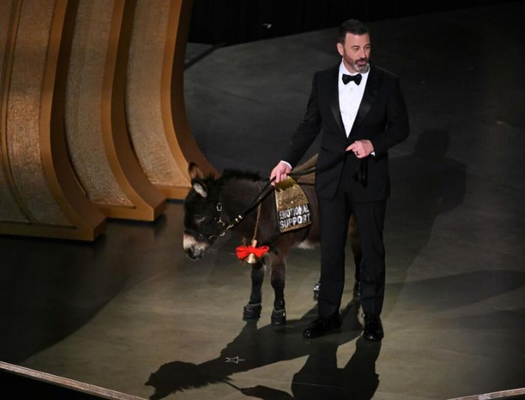 | Le présentateur Jimmy Kimmel sur la scène des Oscars, à Hollywood, le 12 mars |