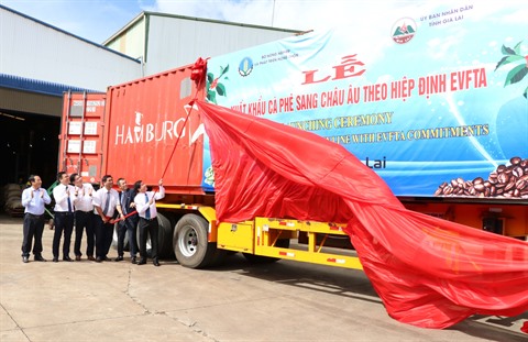 Les 14 conteneurs avec 296 tonnes de café de la Sarl Vinh Hiêp, basée dans la province de Gia Lai (hauts plateaux du Centre) sont expédiés depuis Gia Lai vers les ports de Hambourg en Allemagne et d’Anvers en Belgique. L’UE a éliminé les droits de douane sur tous les produits de café non torréfié ou torréfié, ainsi que le café transformé originaires du Vietnam en vertu de l’EVFTA.