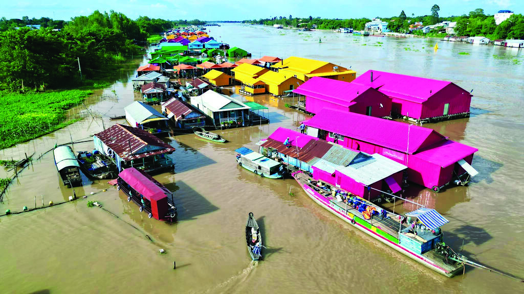 “Le village de radeaux colorés à l’intersection de Châu Dôc s’étend sur plus d’un kilomètre avec 161 cages à poissons, et des maisons de couleurs rouge, jaune, orange, vert, bleu, et violet. Les touristes peuvent le visiter en barque et découvrir la vie sur une maison flottante”, explique Lê Trung Hiêu, directeur du Centre de promotion du commerce et des investissements de la province d’An Giang.