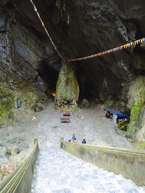 | La grande grotte de la pagode des parfums, nichée dans la montagne. |